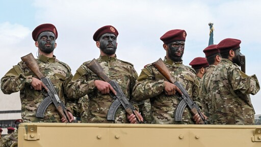 At one point during the parade, troops chanted: “Gaza, Gaza, Gaza, our slogan, night and day, bombing and ruin.